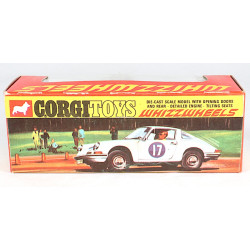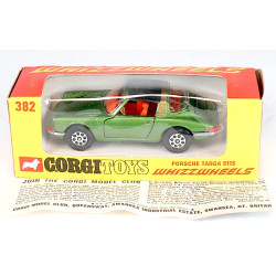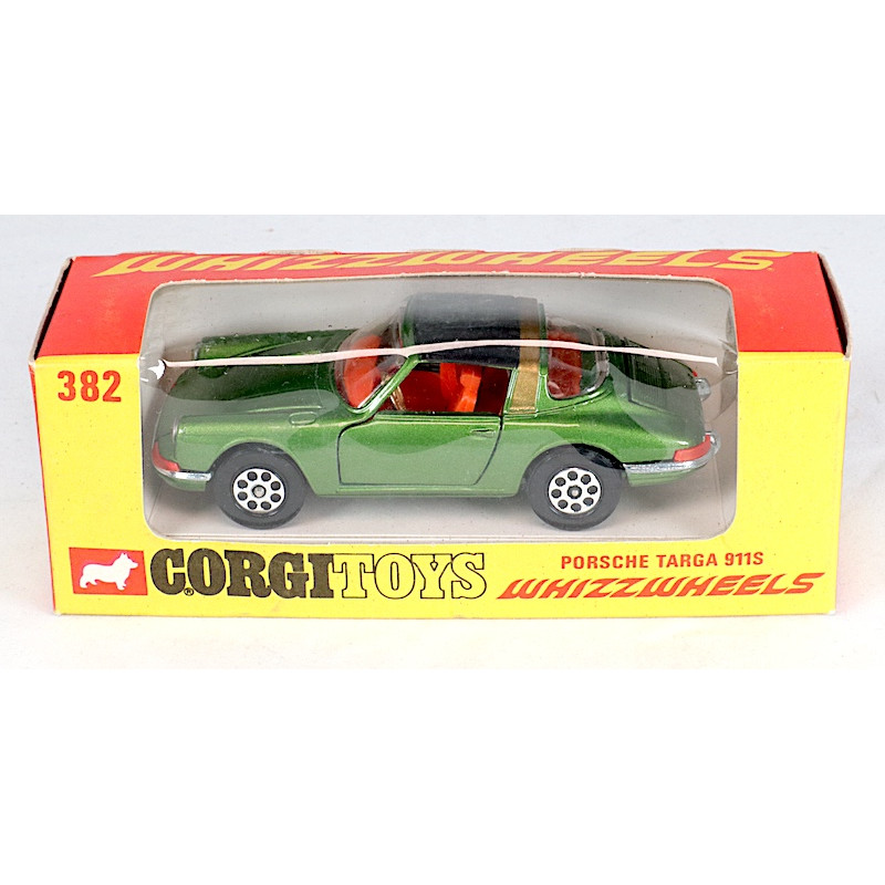 Corgi Toys released the Porsche Targa 911S as number 382 in the early 1970s. The model was produced in various colors, including the striking metallic green, which is now highly sought after by collectors. As was typical of Corgi models of the period, the model included working features, such as a detailed interior and realistic suspension, making the Porsche not only beautiful to look at but also appealing as a toy.