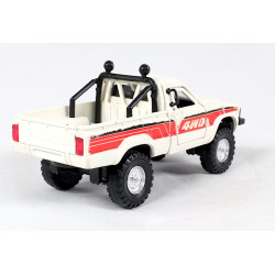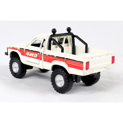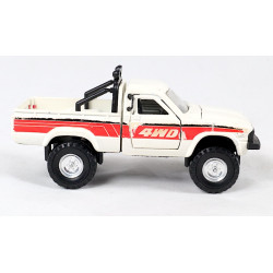 Yonezawa Toys, later known as Diapet, was one of Japan's largest and most influential model manufacturers. The company was known for its durable metal miniatures, often equipped with functional details such as opening doors or sprung axles. Their models were a step above many contemporaries in quality and therefore appealed to both children and adult collectors. Due to relatively limited exports and the fact that many examples were intensively played with, well-preserved Diapet models are becoming increasingly rare today. The Toyota HiLux, on which this model is based, is an icon in the world of off-road vehicles. Since the 1960s, the HiLux has been known for its exceptional reliability, rugged construction, and versatility. The 4WD versions were especially popular with farmers, construction companies, adventurers, and globetrotters. Its reputation for almost mythical durability made the HiLux one of the most respected pickup trucks in the world, a status Diapet successfully translated into a scale model with realistic proportions and a distinctive look.