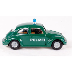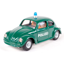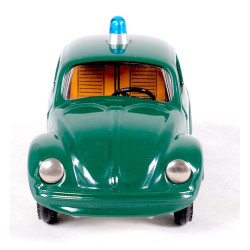 This example is exceptionally well-preserved. The paint is fresh, the lithography shows the classic green and white police livery with crisp details, and the Beetle's shape is exactly as one would expect from a traditional tin vehicle. The compact size and flowing curves enhance the authentic look of this piece, which fits perfectly into collections of tin toys, Volkswagen models, or historic police vehicles.
