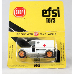 A beautifully preserved EFSI 107 Model T Ford 1919 Ambulance, still safely encased in its original blister packaging, as if it could be summoned at any moment for an emergency drive through a long-vanished cityscape. The model possesses that understated dignity often associated with old emergency services: no swagger, no garish colors, but a calm, steady hand that withstood chaos.