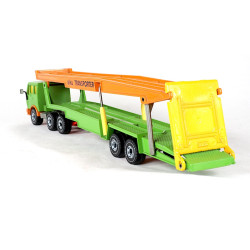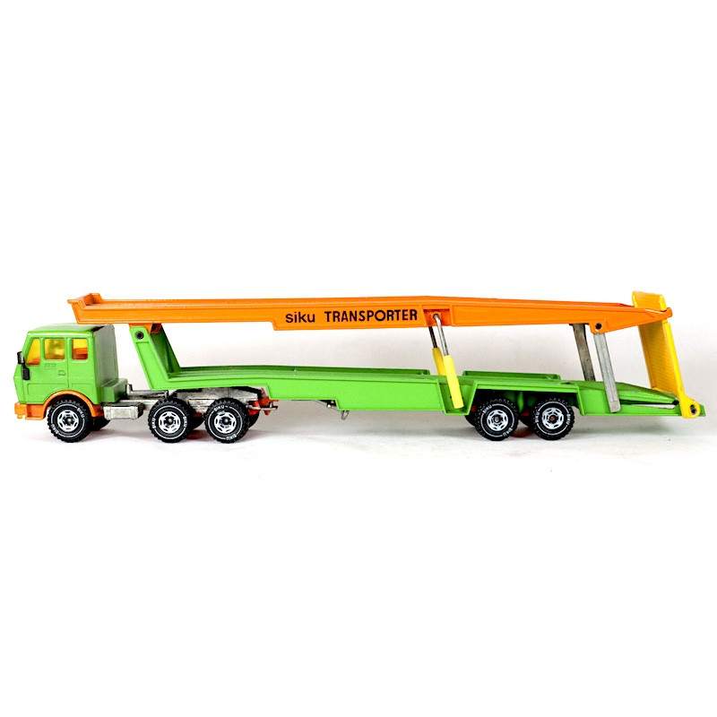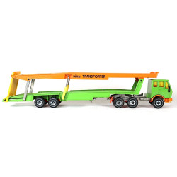 Siku, founded in Germany in 1921, has a long tradition of manufacturing metal and plastic miniatures that combine durability with accurate scale models. The 3112 Car Transporter is a classic example of Siku's attention to functional and detailed models. This transporter combines a realistic Mercedes-Benz truck cab with a sturdy trailer, equipped with ramps and multiple levels for transporting vehicles, making it a striking and recognizable model in any collection.
