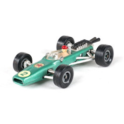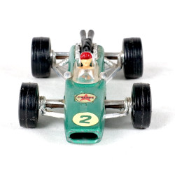 The Majorette 228 F1 racing car with driver and red helmet is a miniature masterpiece that impressively captures the thrill and dynamism of motorsport in miniature. This model, in excellent condition, combines a metal body with meticulously crafted plastic details, giving it a robust yet realistic feel. The presence of the driver with his red helmet adds an extra dimension: it brings the model to life and evokes the presence of a driver experiencing the speed and thrill of a real Formula 1 car. Every detail, from the streamlined cockpit to the wheel tread, contributes to the impression of speed, precision, and competition.