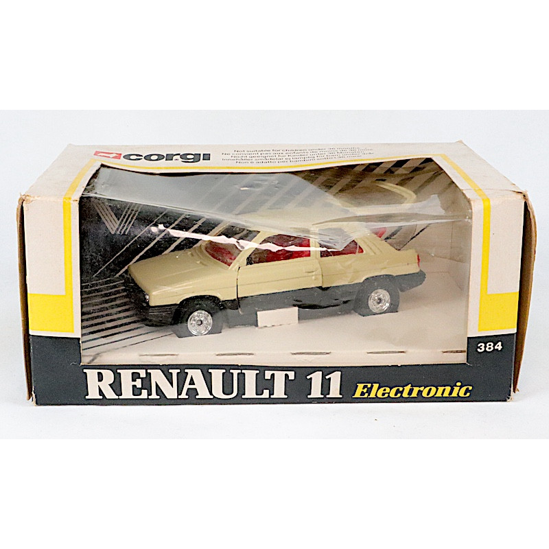 Corgi Toys speelde in op deze technologische innovatie en ontwikkelde in samenwerking met Renault een promotioneel model van de elektrische variant. Dit resulteerde in de Corgi 384, die werd geleverd in een speciaal vormgegeven Renault-doosje, niet te verwarren met de standaard Corgi-verpakkingen. Het model werd doorgaans niet in de reguliere speelgoedwinkels verkocht, maar eerder uitgedeeld of aangeboden via Renault-kanalen, wat deze versie bijzonder zeldzaam maakt.