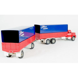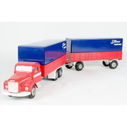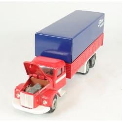 De Scania LS110 "Vabis" is een prachtig voorbeeld van Tekno’s vakmanschap in de jaren ’60 en ’70. Tekno, oorspronkelijk een Deens merk, produceerde vanaf eind jaren ’60 ook in Nederland een uitgebreide reeks vrachtwagenminiaturen die uitblonken in detail en realisme. Deze modellen waren geliefd bij zowel kinderen als verzamelaars en zijn tegenwoordig ware klassiekers in de modeltruckwereld.