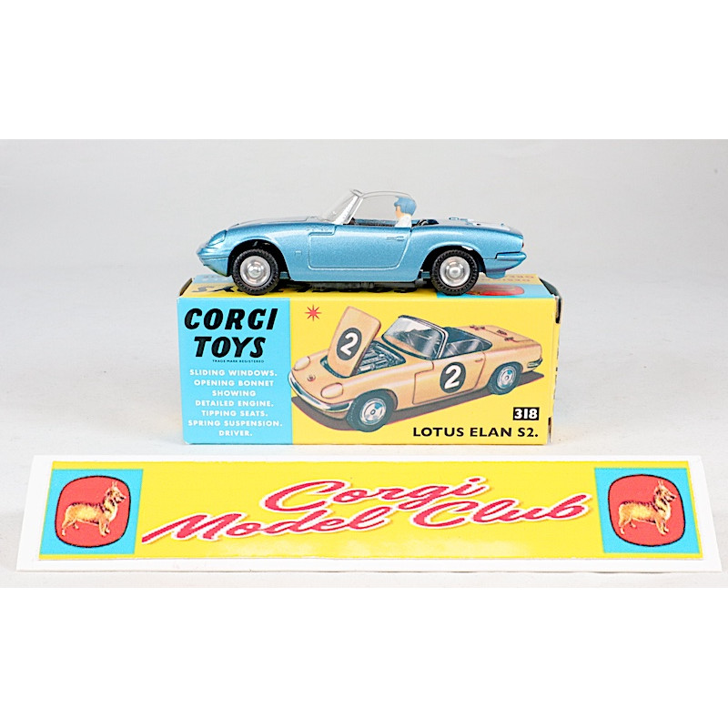 Corgi bracht in 1966 de miniatuurversie uit onder nummer 318. Zoals gebruikelijk bij Corgi in die tijd, viel het model op door zijn verfijnde details en speelfuncties. Originele exemplaren van de Lotus Elan S2 zijn tegenwoordig zeer gezocht onder verzamelaars, zeker compleet met doos.