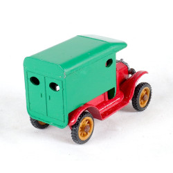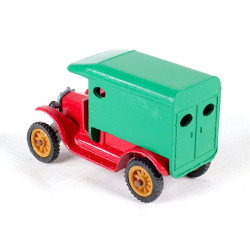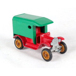 De Best Box-uitvoering van deze 1919 Delivery Van vangt die historische uitstraling op herkenbare wijze. Het model is uitgevoerd in metaal, met de typische Best Box-stijl: eenvoudige maar duidelijke lijnen, solide constructie en een nostalgische uitstraling die herinneringen oproept aan speelgoed uit een tijd waarin eenvoud en duurzaamheid centraal stonden. De vintage grafische bedrukking en de karakteristieke vormgeving van de T-Ford maken dit miniatuur tot een ware blikvanger.