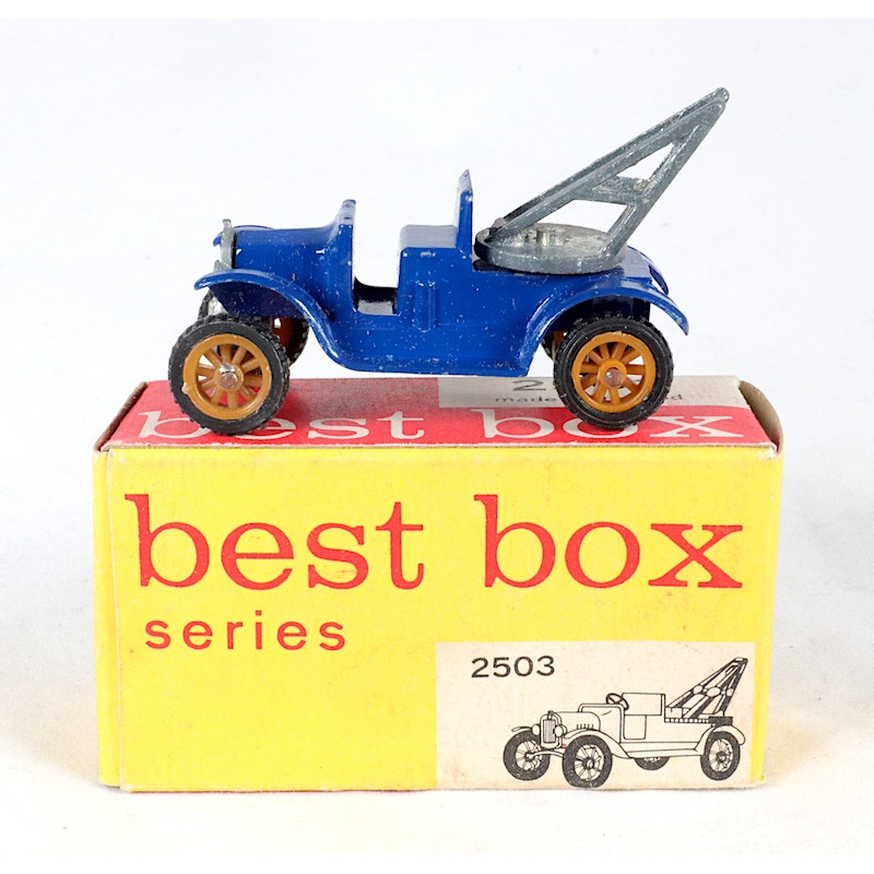 Best Box, een merk dat vanaf de jaren zestig in Nederland werd geproduceerd, is een geliefde naam onder verzamelaars vanwege zijn robuuste, metalen modellen die een geheel eigen stijl en uitstraling hebben. Het bedrijf richtte zich op stevig speelgoed voor dagelijks gebruik, maar wist tegelijkertijd miniaturen te maken die juist door hun eenvoud en herkenbaarheid een blijvende charme hebben. Omdat Best Box voornamelijk voor de Nederlandse markt produceerde, zijn complete en gave sets vandaag de dag vrij schaars.