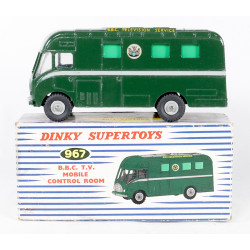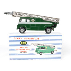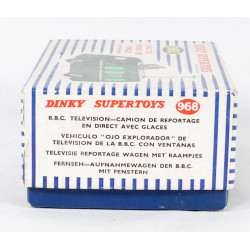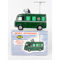 De Dinky Toys 967, 968 en 969 B.B.C. set vormt een bijzonder hoofdstuk in de geschiedenis van Brits miniatuurspeelgoed, een kleine wereld waarin techniek, media en verbeelding elkaar ontmoetten. Geproduceerd tussen 1959 en 1964 vangt de set de sfeer van een tijdperk waarin televisie nog iets plechtigs had, alsof elke uitzending een klein ritueel was dat het land samenbracht. De drie voertuigen, de camerawagen, de geluidswagen en de transmissiewagen, zijn ontworpen als een mobiele omroepkaravaan, klaar om nieuws, sportwedstrijden en evenementen van nationale betekenis naar het publiek te brengen.