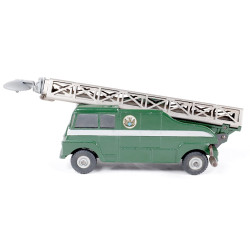 In zeer goede en volledig originele staat blijven deze modellen een venster naar hun tijd. De metalen carrosserieën dragen de ingetogen, professionele uitstraling van de klassieke BBC vormgeving, met het kenmerkende logo dat nog altijd symbool staat voor betrouwbaarheid en vakmanschap. De details van de set laten zien hoe zorgvuldig Dinky werkte, de camerawagen met zijn imposante camera opbouw, de geluidswagen met zijn compacte maar technisch ogende vorm en de transmissiewagen die de indruk wekt dat hij op elk moment een antennemast zou kunnen uitrollen om een live uitzending te versturen. Samen vertellen ze een verhaal dat verder gaat dan speelgoed, een verhaal over de vroege, bijna magische fase van televisieproductie.