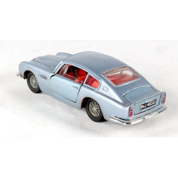 Dit model draagt ook de sfeer van een tijd waarin speelgoedfabrikanten auto’s niet enkel wilden imiteren, maar hun karakter wilden vangen. De DB6 is geen brute sportwagen, hij is een reiziger, een auto die ontworpen werd voor lange wegen, zacht golvende landschappen en bestuurders die hun snelheid niet hoefden te bewijzen. Die uitstraling leeft in de miniatuur voort, alsof hij in stilte verslag doet van een wereld waarin elegantie en mechaniek een harmonieuze dans uitvoerden.